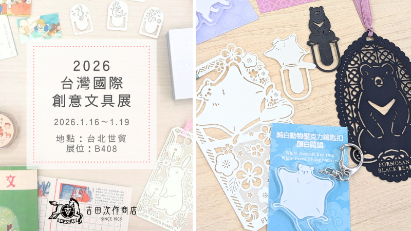 オリジナル紙ものブランド「吉田次作商店」が、2026年1月16日(金)~19日(月)に台北で開催される「台湾国際文具展示会」に出店いたします。