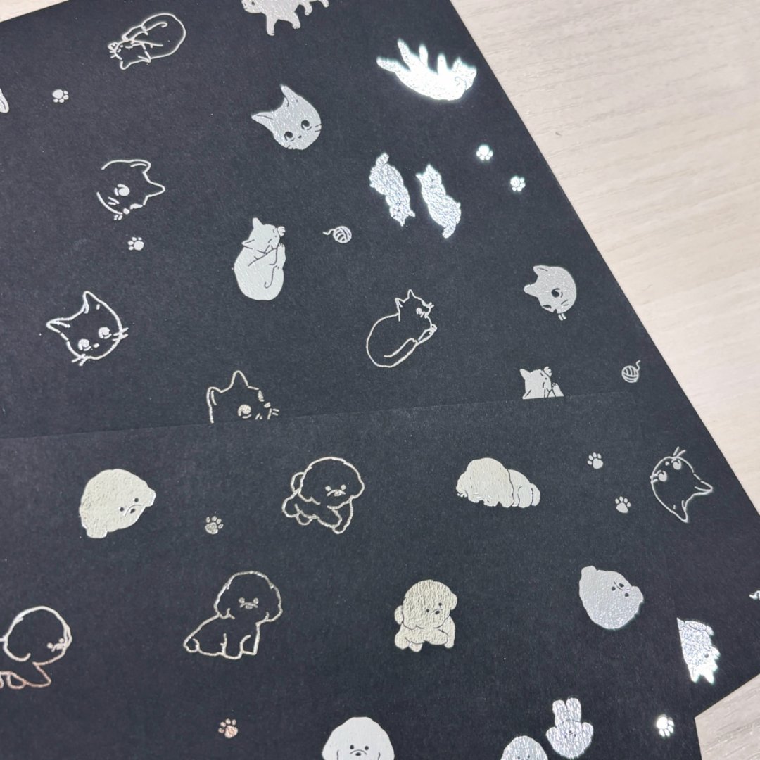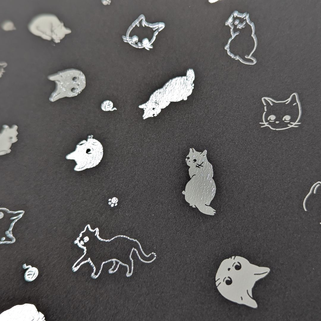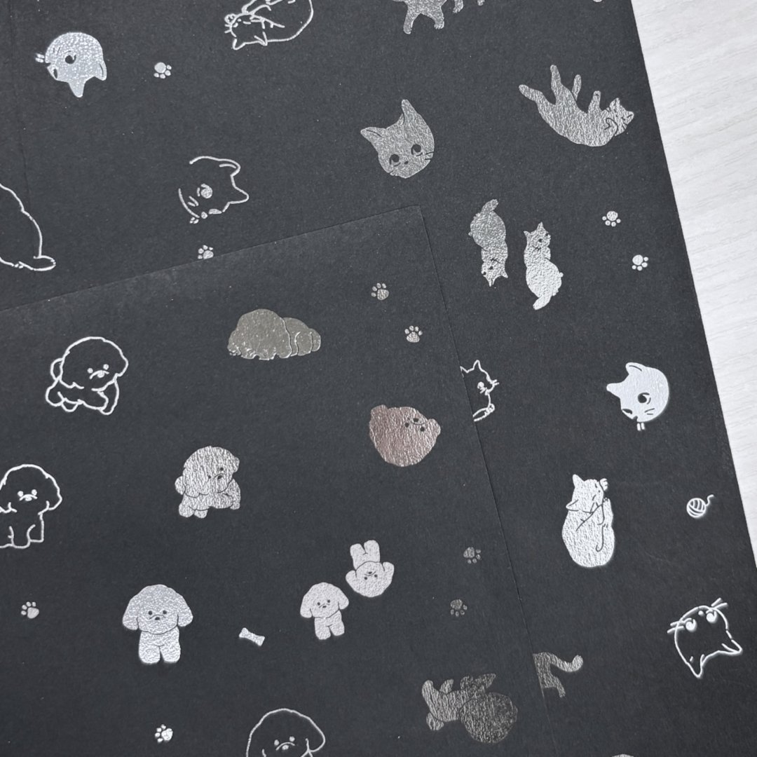 黒い紙にシルバーの箔押しがキラキラ輝くデザインペーパー。