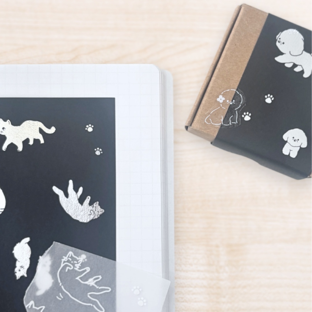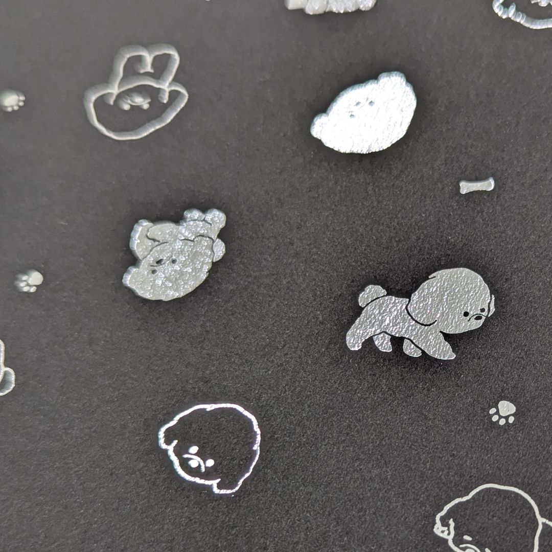 おさんぽしたり、ねころんだり、いろいろなポーズのトイプードルとボンベイを散りばめました。ホワイトやメタリックのマーカーとの組み合わせもおすすめ。