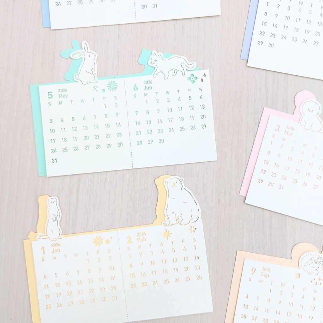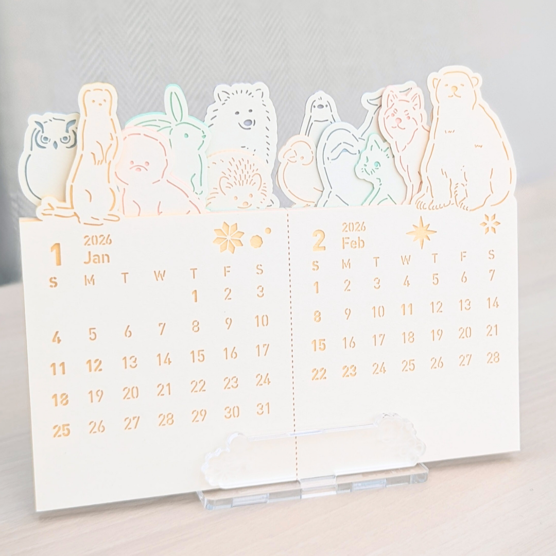 まっしろどうぶつたちが顔を出す2026年のカレンダー。