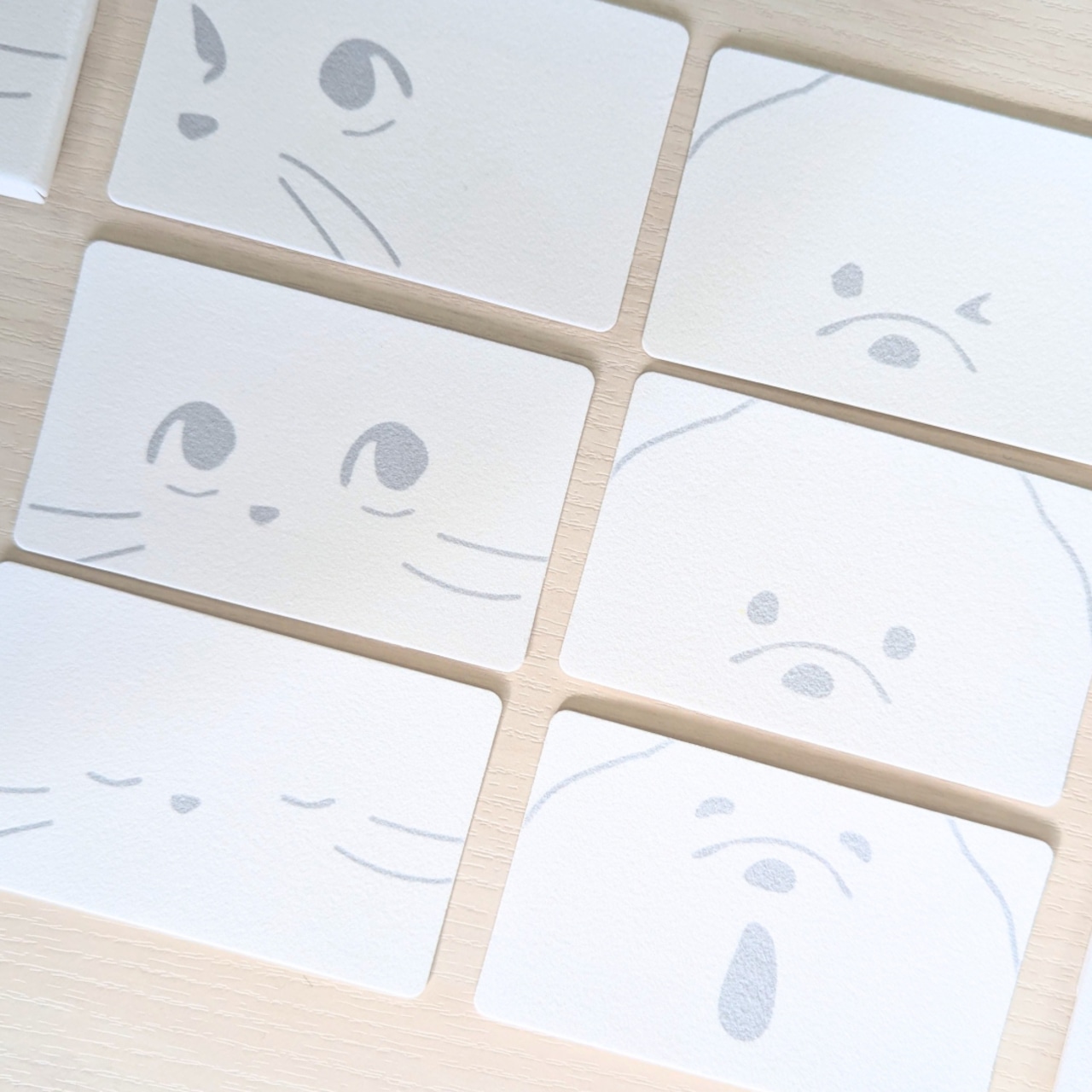 まっしろなどうぶつたちが、紙の上でそっと佇んでいます。