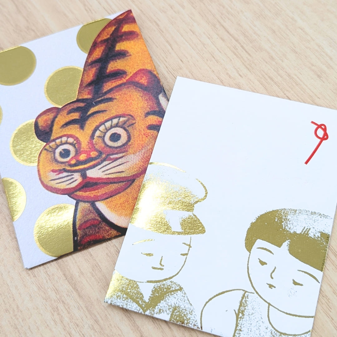レトロなデザインに箔+カラーの印刷で、インパクトあるキラキラ豪華な仕上がりのポチ袋。